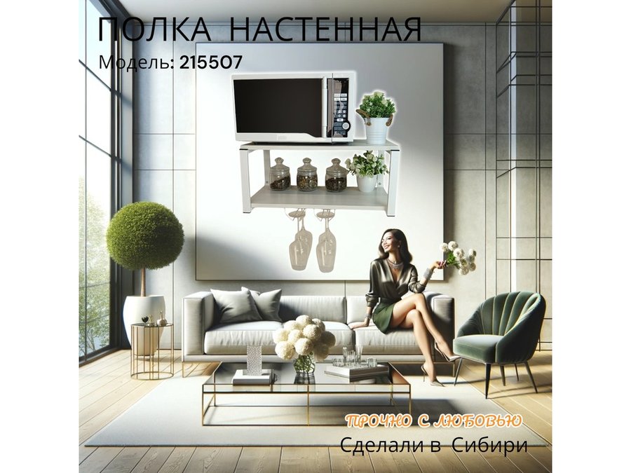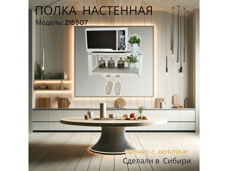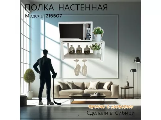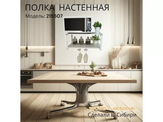 • Полка надежно крепится к стене при помощи анкеров или шурупов с дюбелями, на ней можно разместить микроволновую печь, кухонную технику, посуду, специи