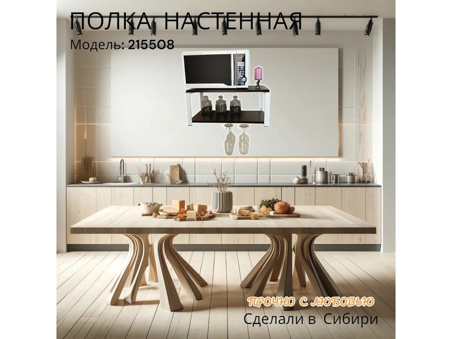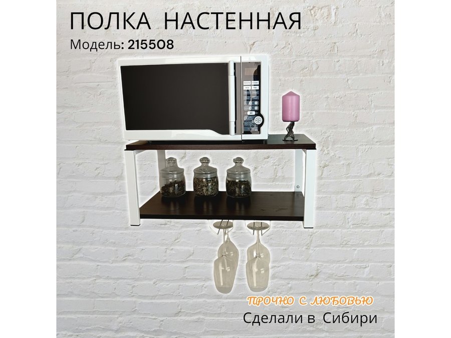 Полка c двумя бокалодержателем для микроволновки "SVCH 215508" 60х30см, белая, венге