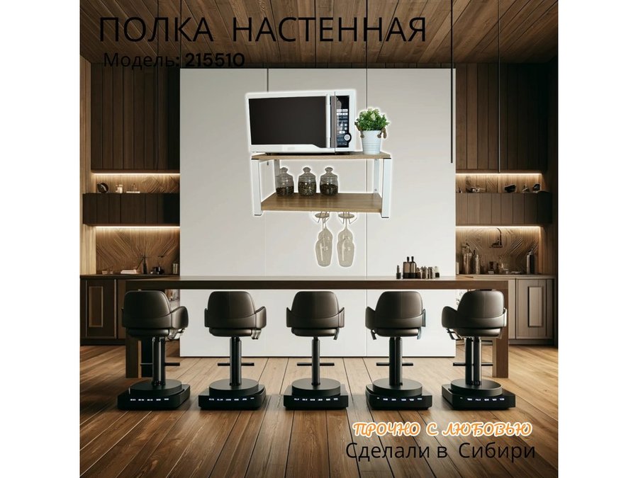 В корзину Купить в 1 клик Полка c двумя бокалодержателем для микроволновки "SVCH 215510" 60х30см, белая, дуб сонома