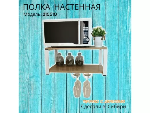 Полка c двумя бокалодержателем для микроволновки "SVCH 215510" 60х30см, белая, дуб сонома