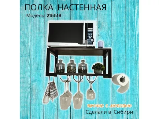 Полка c тремя бокалодержателем и полотенцед. для микроволновки "SVCH 215516" 60х30см, черная, венге