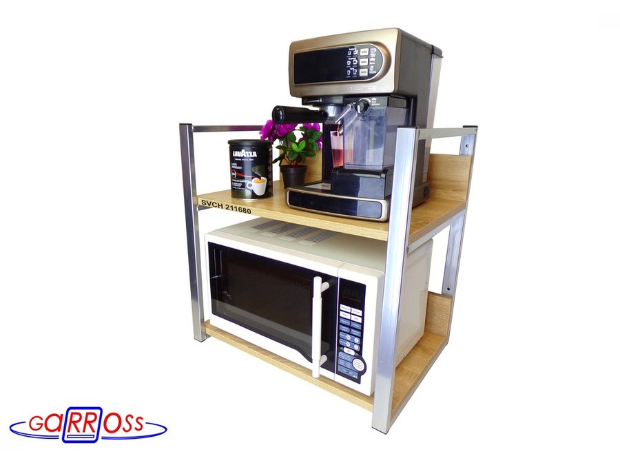 Кронштейн для микроволновки, 54см серебристый "SVCH 211680" две полки 35х54см со стенками, дуб