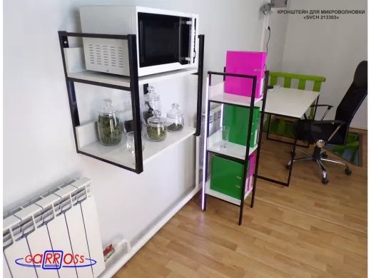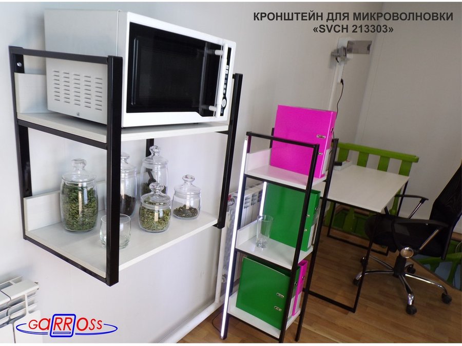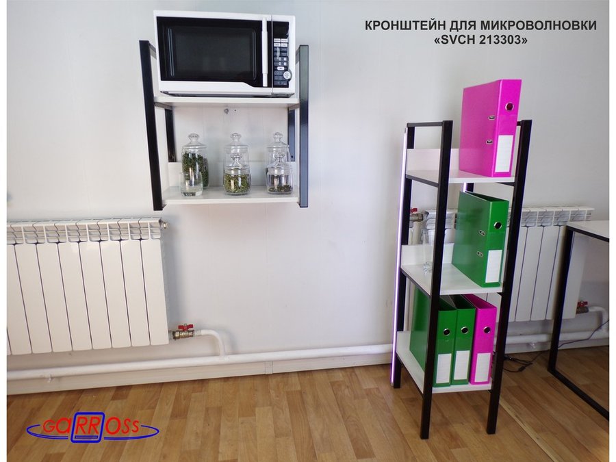 Кронштейн для микроволновки, высота, 54см черный "SVCH 213303" две полки 35х60см со стенками, сосна