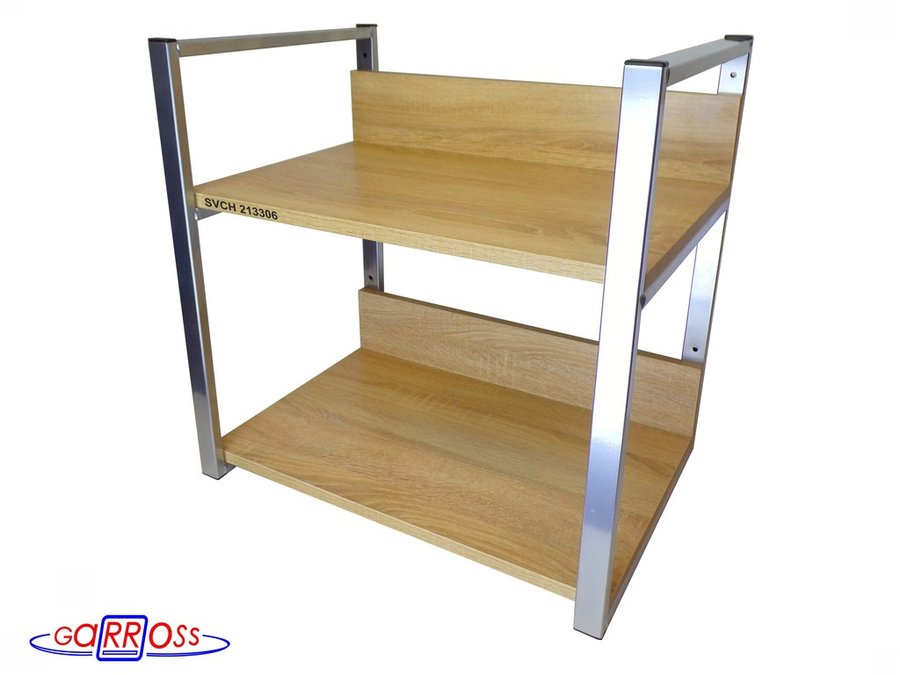 Кронштейн для микроволновки, высота, 54см серебр "SVCH 213306" две полки 35х60см со стенками, дуб
