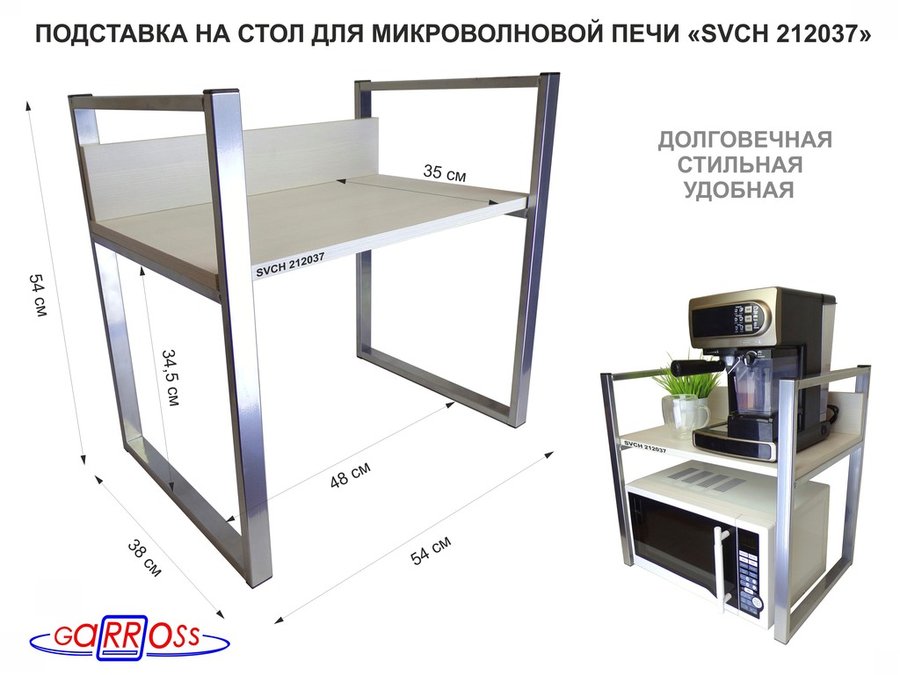 В корзину Купить в 1 клик Подставка, полка на стол для микроволновой печи, высота 54см серебристый "SVCH 212037" 35х54, сосна