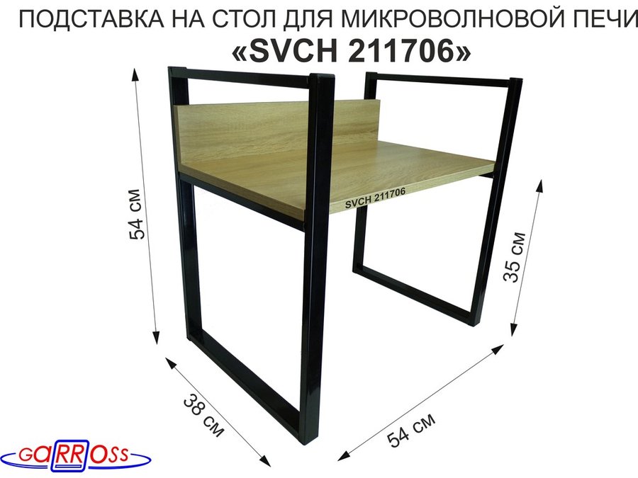 Подставка, полка на стол для микроволновой печи, высота 54см чёрный "SVCH 211706" полка 35х54, дуб