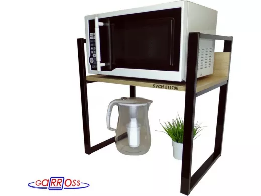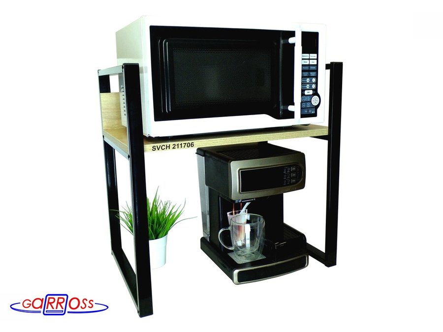 Универсальная подставка для бытовой техники (микроволновой печи, кофемашины, тостера, электрического чайника и др) позволяет эффективно использовать место на столе.