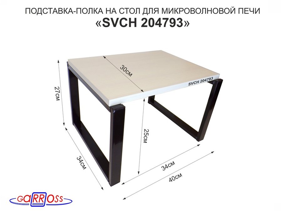 Подставка, полка на стол для микроволновой печи, высота 27см чёрный "SVCH 204793" 30х40см,сосна выб.