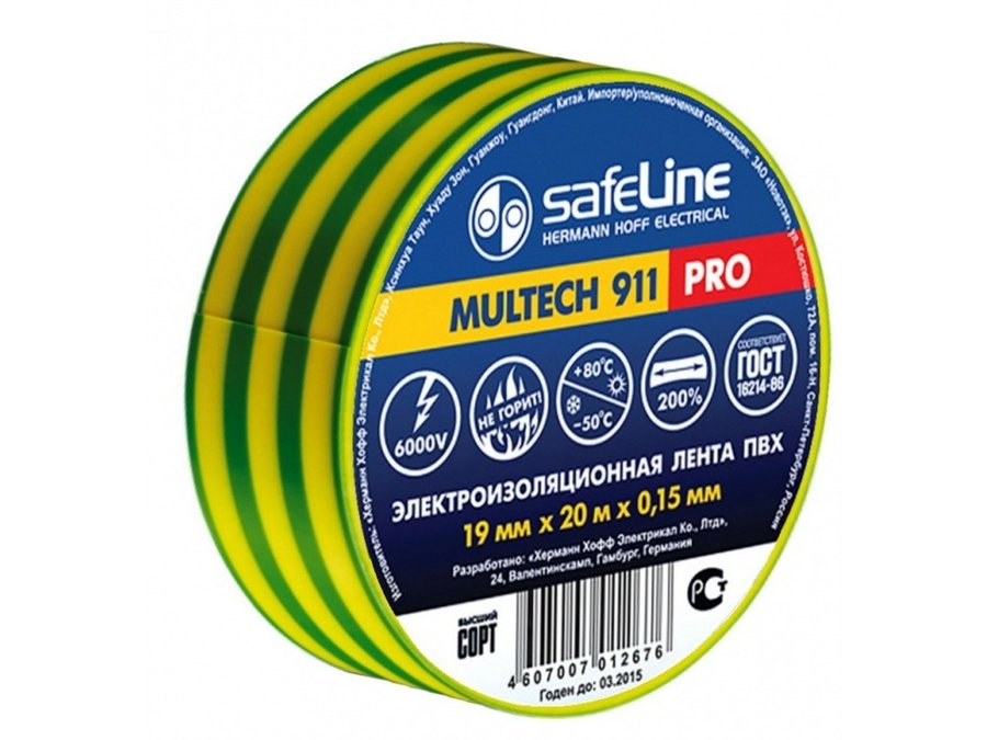 В корзину Купить в 1 клик Изолента 19мм х 20метров желто-зеленая Safeline