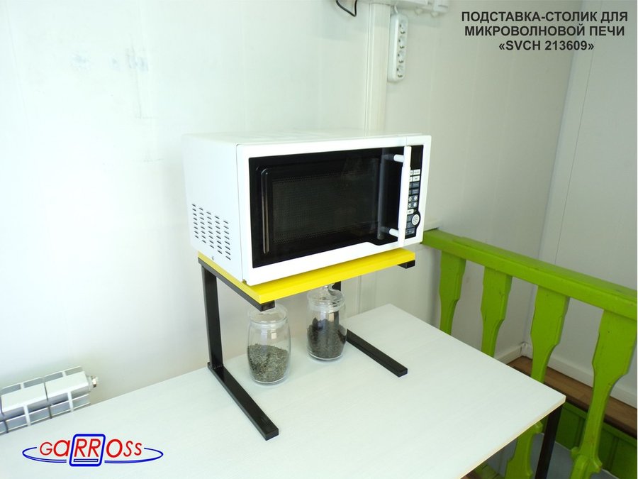 Универсальная подставка для микроволновой печи позволяет эффективно использовать место на столе.