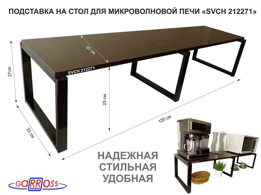 В корзину Купить в 1 клик Подставка на стол для микроволновой печи, высота 27см, черный "SVCH 212271" полка 120х30см, венге