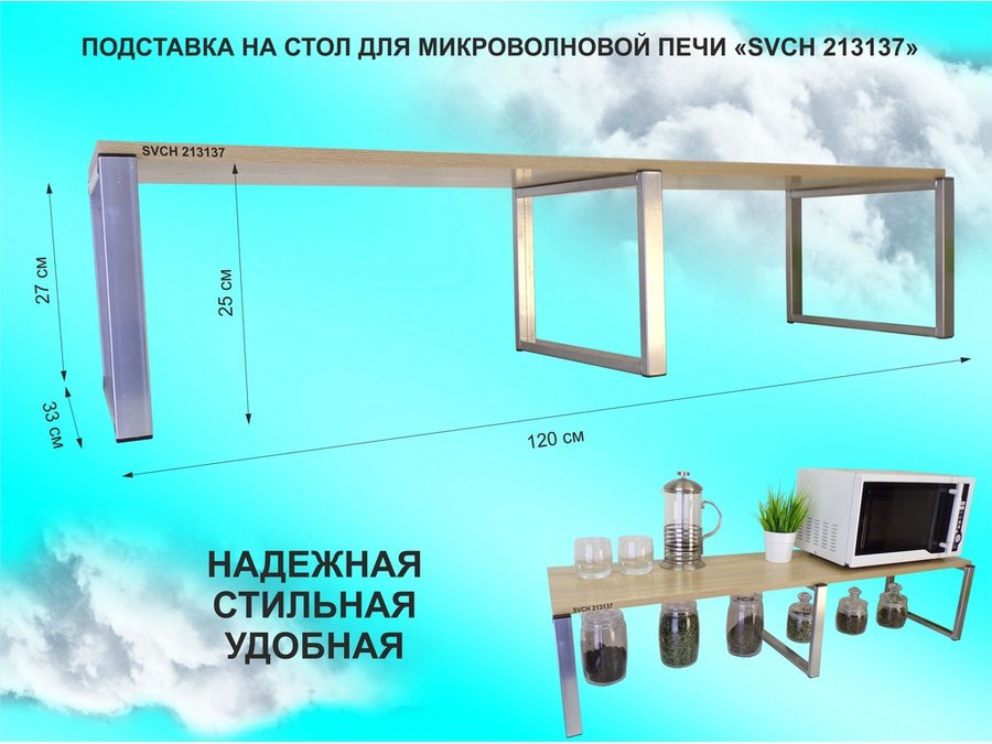 Подставка на стол для микроволновой печи, высота 27см, серебр "SVCH 213137" полка 120х30см, дуб соно