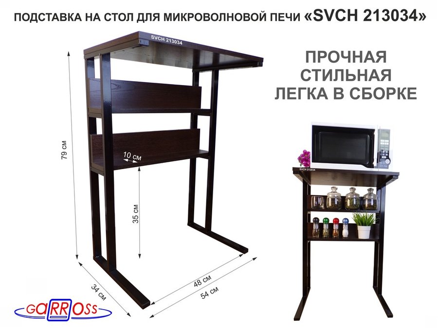 Подставка на стол для микроволновой печи,черный "SVCH 213034" высота 79 см, 54х35см и 54х8,4см,венге