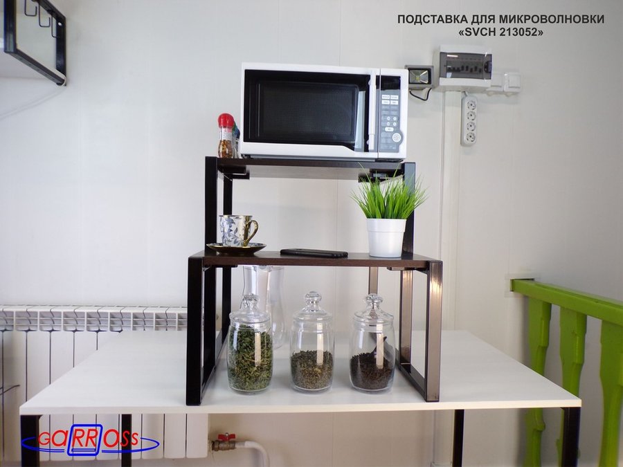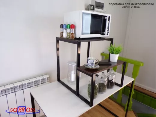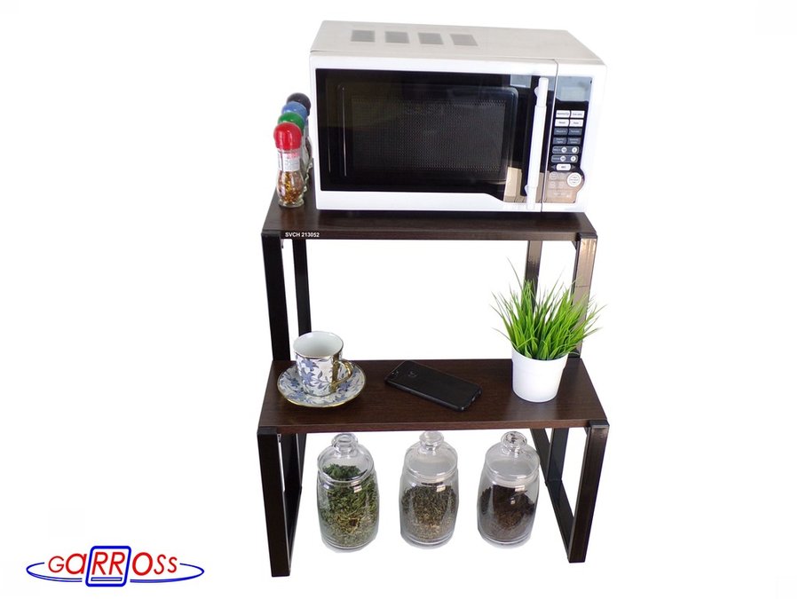 • Универсальная подставка для бытовой техники (микровоновой печи, кофемашины, тостера, электрического чайника и др) позволяет эффективно использовать место на столе.