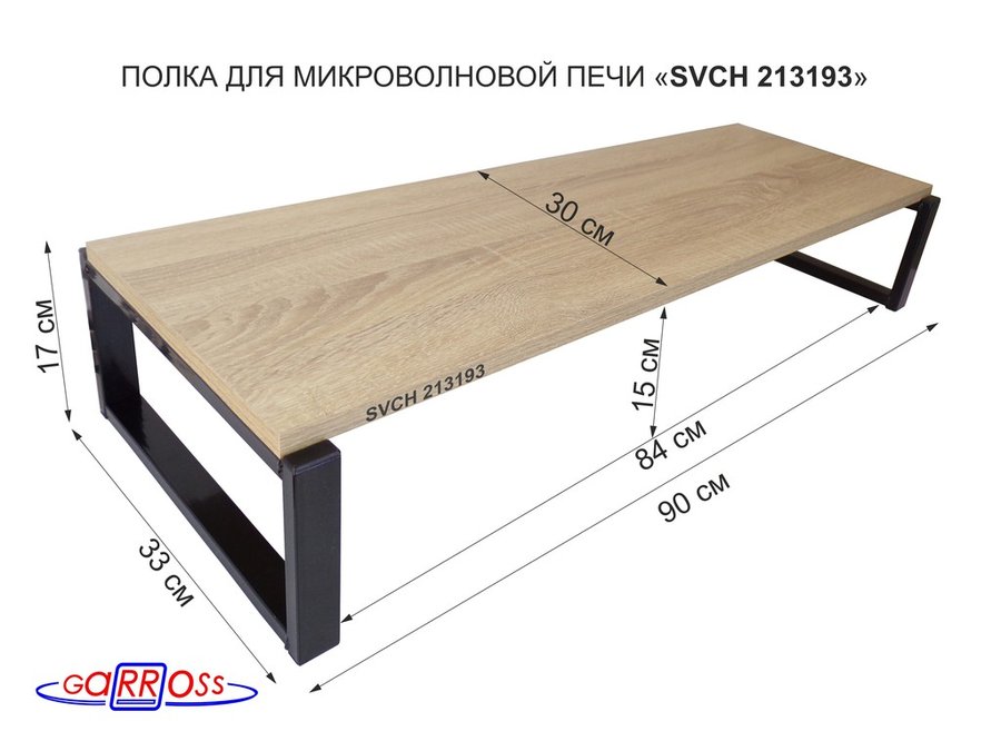 Подставка на стол для микроволновой печи, высота 17см, черный "SVCH 213193" полка 90х30см,дуб сонома