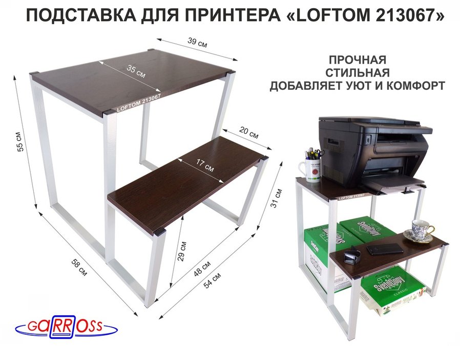 В корзину Купить в 1 клик Подставка для принтера, подставка под МФУ, высота 55см и 31см, серый "LOFTOM 213067" 54х35 см,венге