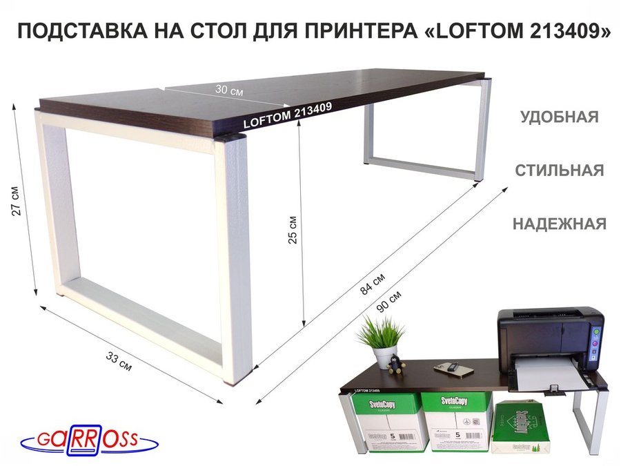 В корзину Купить в 1 клик Подставка под принтер, подставка для МФУ, высота 27см, серый "LOFTOM 213409" полка 90х30см, венге