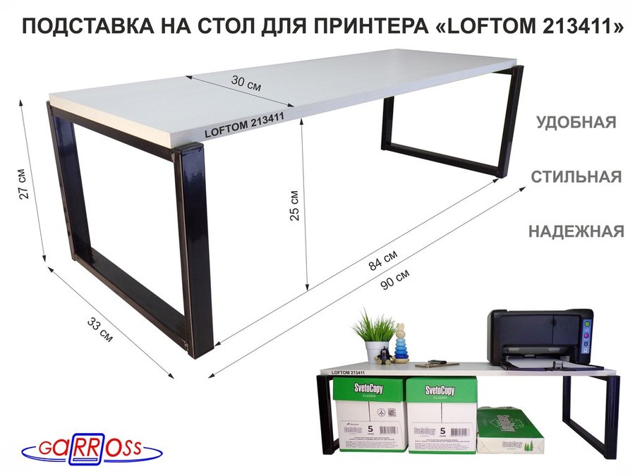 . Подставка под принтер и оргтехнику "LOFTOM" высота 27см, 90х30см, 1 уровень