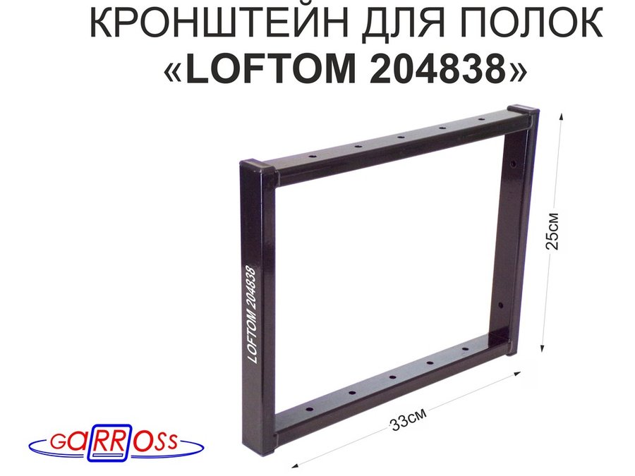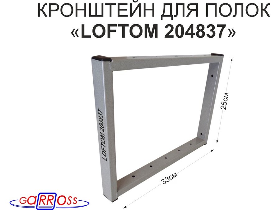 Кронштейн для полок, высота 25см, столешниц, раковин, вылет 33см, 12 отв серебристый "LOFTOM 204853"