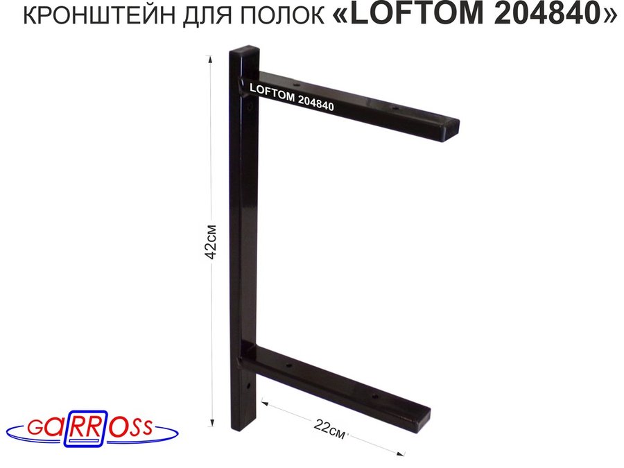 Кронштейн для полок, высота 20см, для столешниц, раковин, вылет 38см, 10отв., чёрный "LOFTOM 212150"