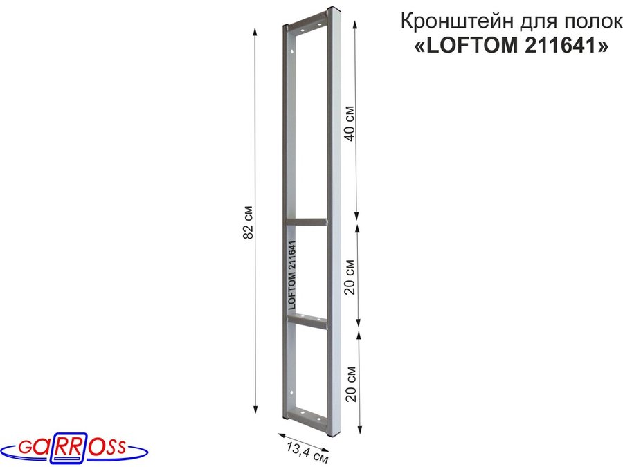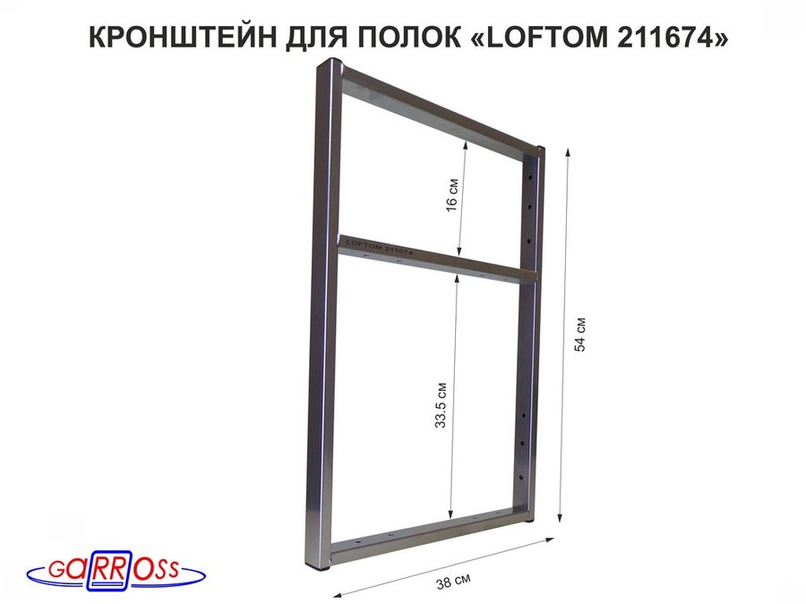 Кронштейн для полок, высота 54см, для столешниц, раковин, вылет 38см, 14 отв. серебр "LOFTOM 211674"