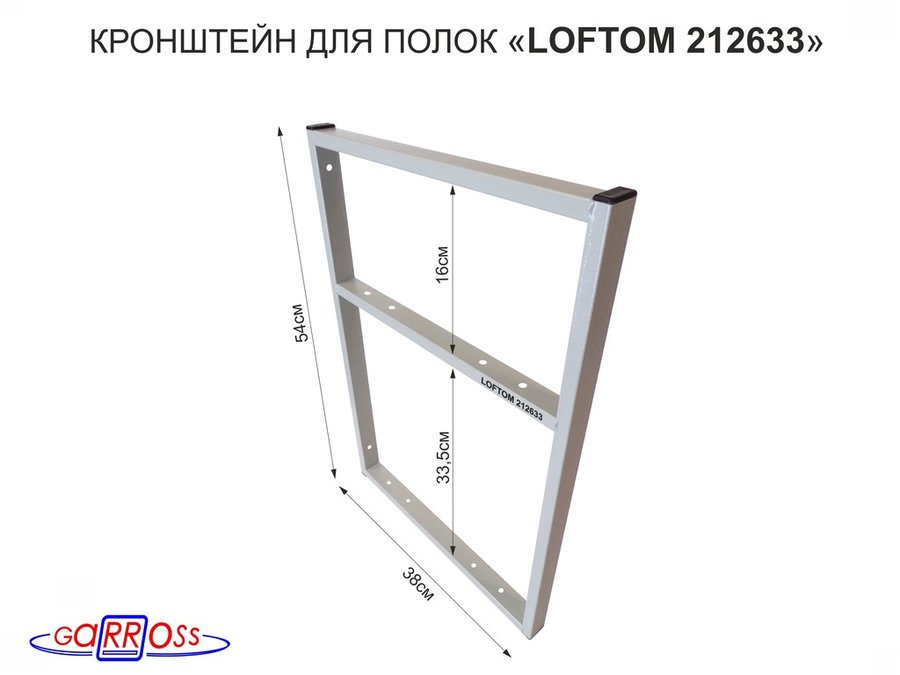 Кронштейн для полок, высота 36см, для столешниц, раковин, вылет 38см, 10 отв., серый "LOFTOM 212149"