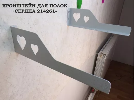 Кронштейн "СЕРДЦА 214261" для полок, левый 30x8 см , 7 отверстий 7 мм, серый