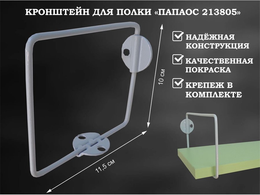 В корзину Купить в 1 клик Кронштейн к стене для полки, высота 10см, вылет 11,5см, серый "ПАПАОС 213805" прямоугольный