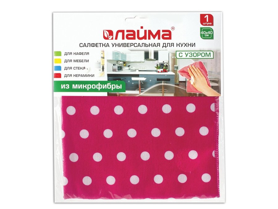 В корзину Купить в 1 клик Салфетка универсальная для кухни, микрофибра с узором (розовая в горошек), 40х40см "BR-78082"