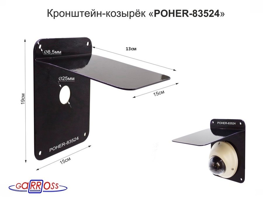 В корзину Купить в 1 клик Кронштейн-козырёк для защиты камеры от дождя "POHER-83524" (VNI09-20B) сталь 2мм, чёрный