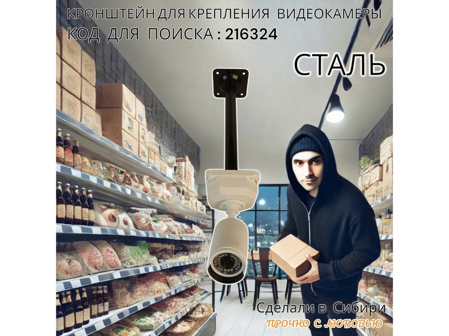 - Данный кронштейн позволяет закрепить видеокамеру с гермобоксом и различные конструкции (коробки, корпуса, щиты) на стене, потолке или к полу.