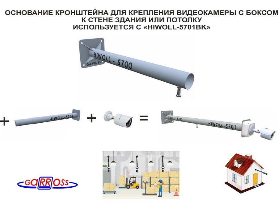В корзину Купить в 1 клик Кронштейн HIWOLL-5600GR серый, с козырьком для видеокамеры, к стене, высота 1метр, 0,2х 0,6х0,25м