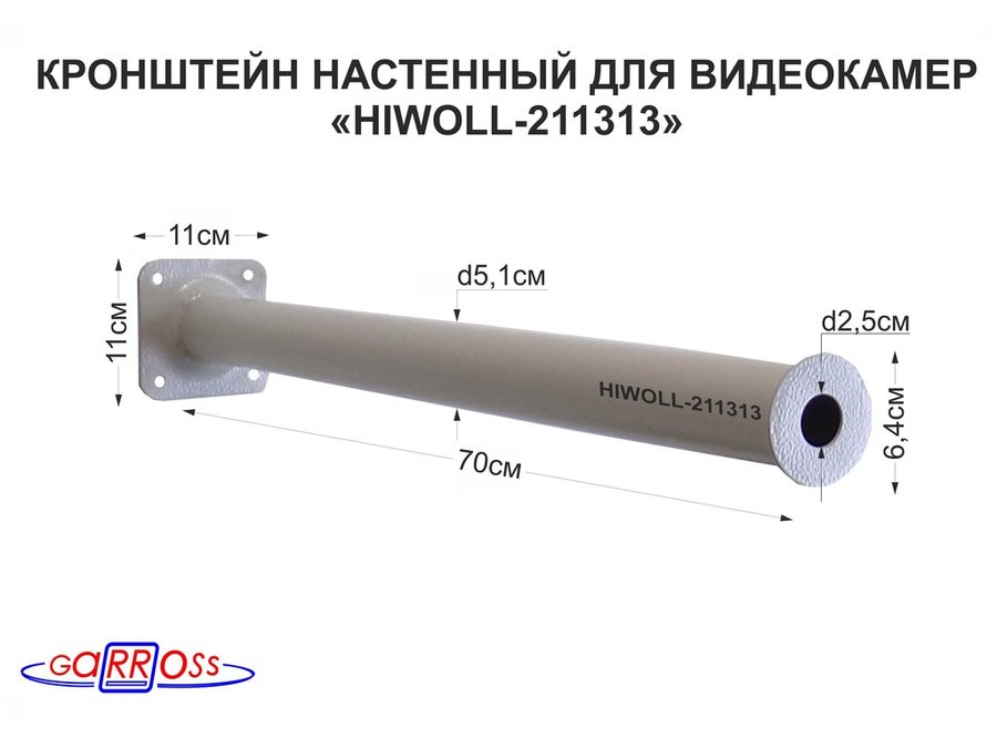 В корзину Купить в 1 клик Кронштейн 70 см "HIWOLL-211313" бокс настенный для видеокамеры, отв.25мм, диск 64мм, сталь, серый