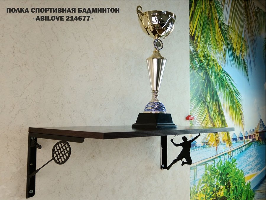 Полка спортивная "БАДМИНТОН АБИЛАВ-214677" для кубков, наград, грамот, медальница, венге, 30х60см