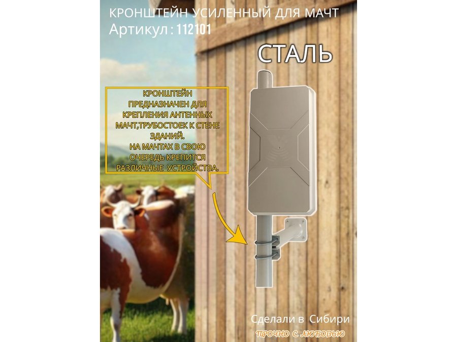 - Кронштейн предназначен для крепления к стене здания с выносом 30 см антенных мачт и трубостоек.