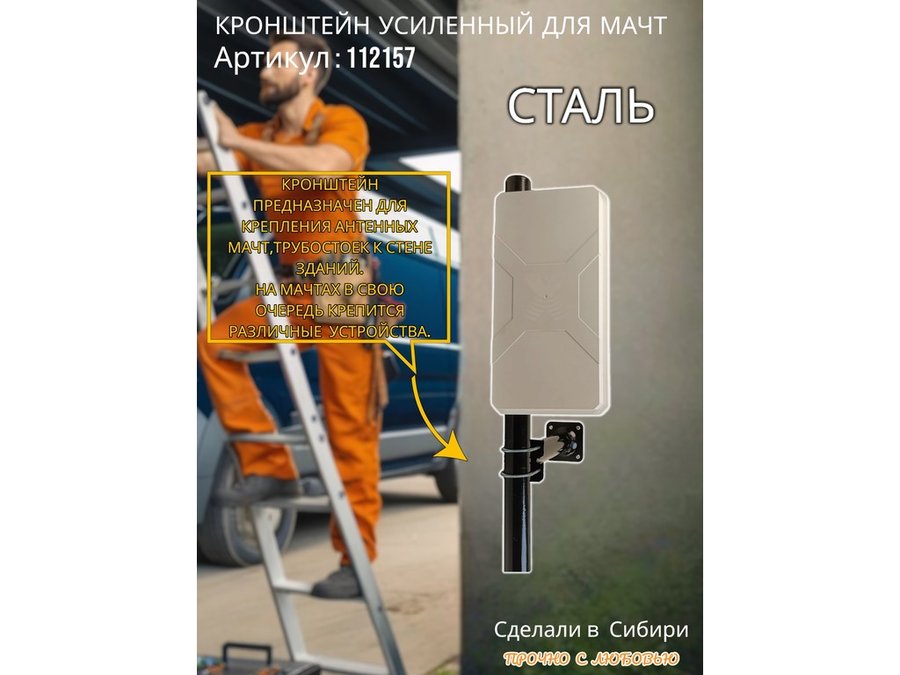 • Кронштейн предназначен для крепления к стене здания с выносом 30 см антенных мачт и трубостоек.
