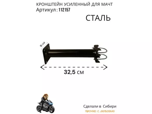 Кронштейн усиленный для мачт "МачтаКреп-112157" черный, два хомута, вылет 0,3м, зажим до 51мм
