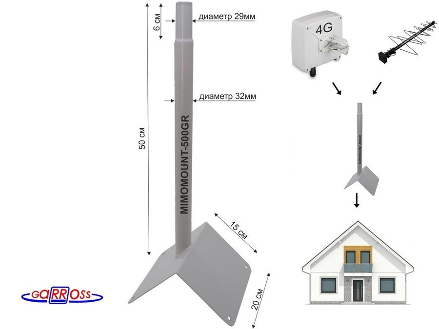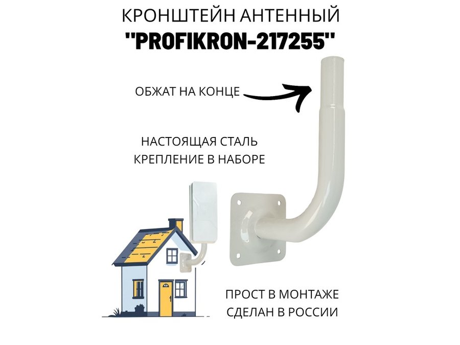В корзину Купить в 1 клик Кронштейн антенный, вылет 0,27м, вверх 0,23м "PROFIKRON-217376" серый, диаметр 32мм