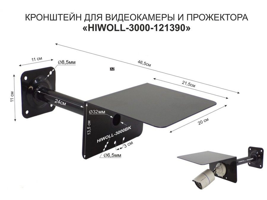 В корзину Купить в 1 клик Кронштейн "HIWOLL-217412" на столб для видеокамеры, вылет 100см, с укосиной, черный, сталь
