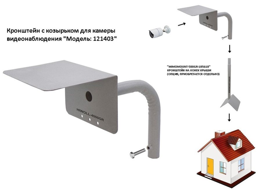 В корзину Купить в 1 клик Кронштейн на столб для поворотной камеры с козырьком и вылетом 100 см "HIWOLL-217394" серый, сталь