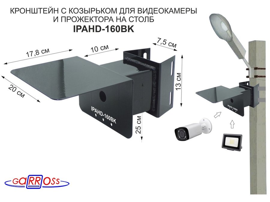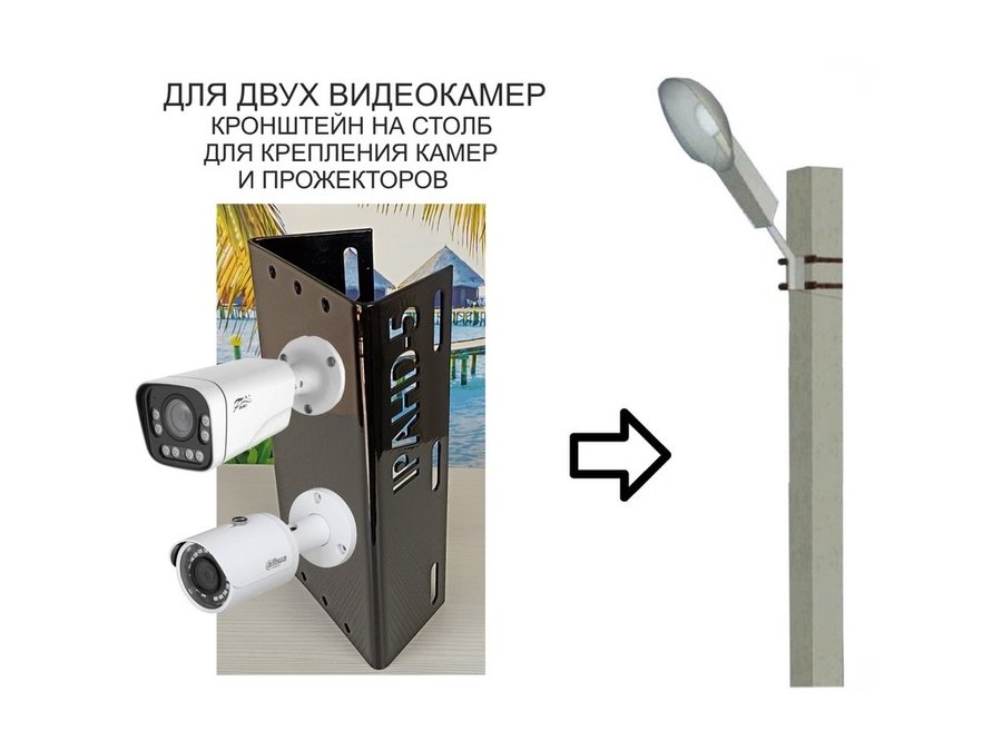 В корзину Купить в 1 клик Кронштейн на столб для крепления гермобокса с видеокамерой,вылет 100 см "HIWOLL-217397" черн., сталь