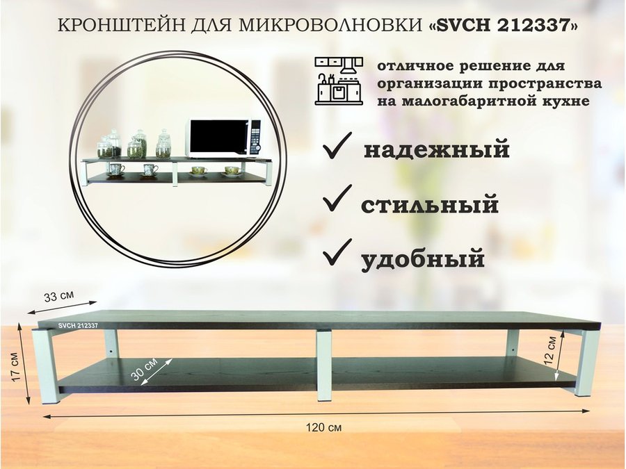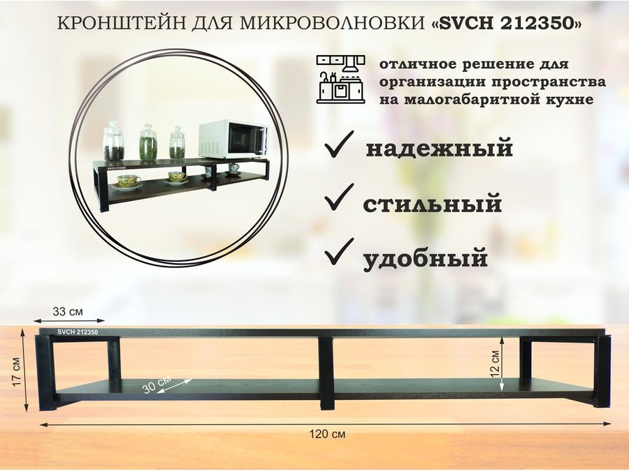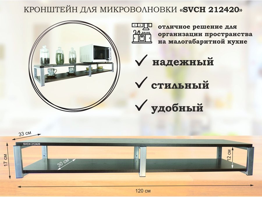 В корзину Купить в 1 клик Кронштейн для микроволновки, 17см серебристый, 2 полки 30х120см "SVCH 212420" венге