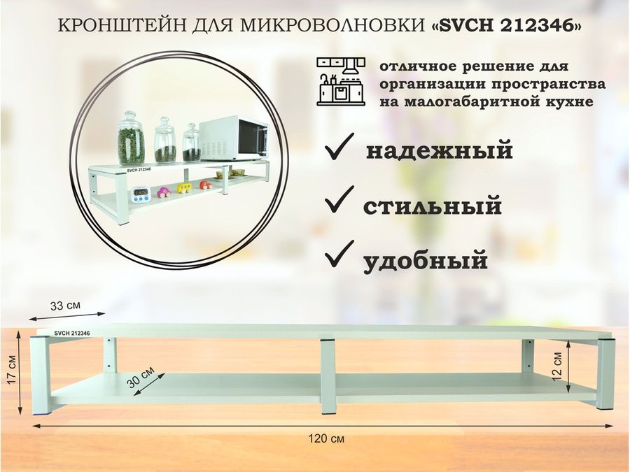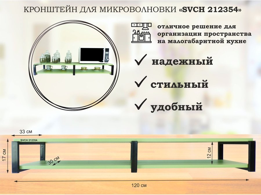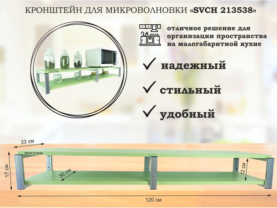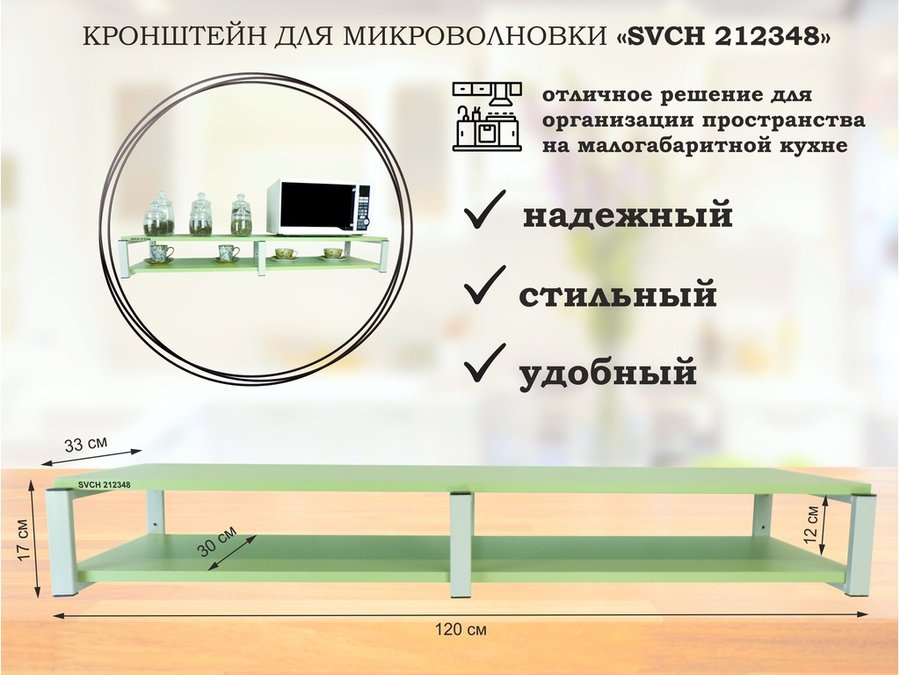 В корзину Купить в 1 клик Кронштейн для микроволновки, 17см серый, 2 полки 30х120см "SVCH 212348" под микроволновую, салатовый