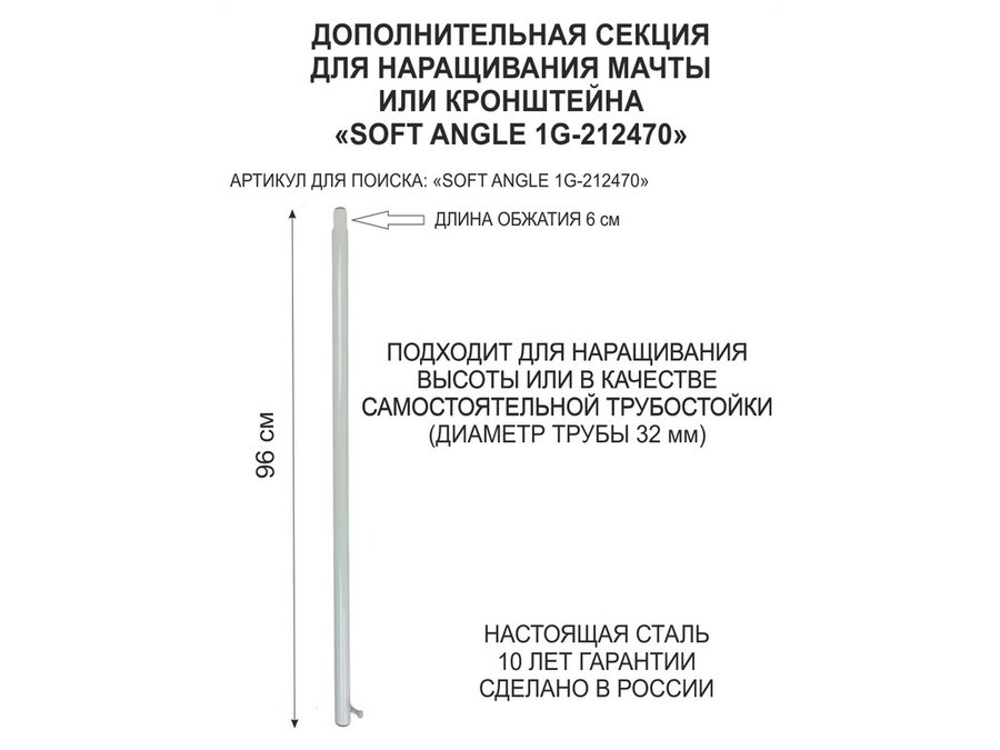В корзину Купить в 1 клик Секция антенная универсальная серая 96 см обжата, с болтом "SOFT ANGLE 1G-212470"для мачт диам 32мм