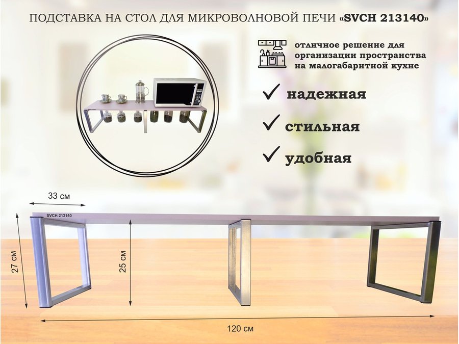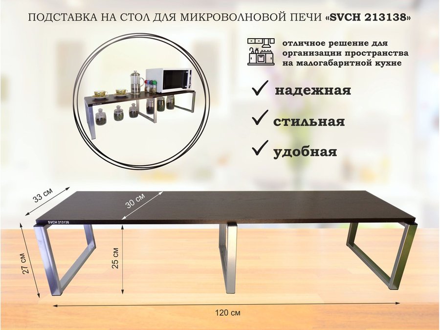 В корзину Купить в 1 клик Подставка на стол для микроволновой печи, высота 27см, серебр "SVCH 213138" полка 120х30см, венге
