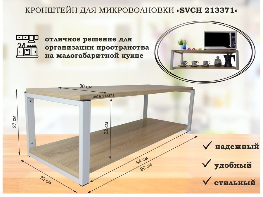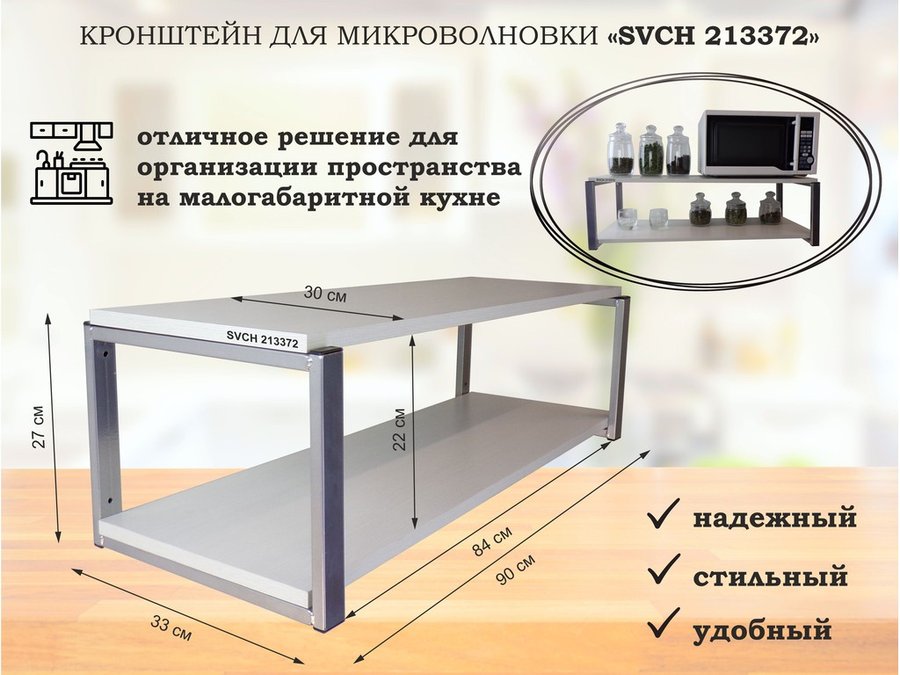 В корзину Купить в 1 клик Кронштейн для микроволновки, серебристый, 27 см "SVCH 213374" полки для кухни, 90х30, дуб сонома