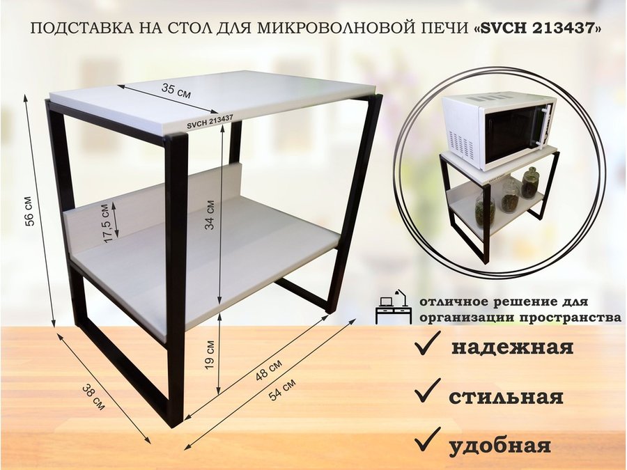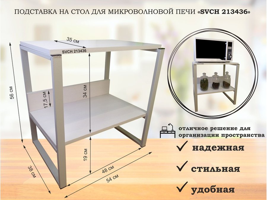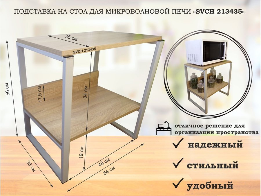 В корзину Купить в 1 клик Подставка, полка на стол для микроволновой печи, высота 56см серый "SVCH 213434" полка 35х54, венге