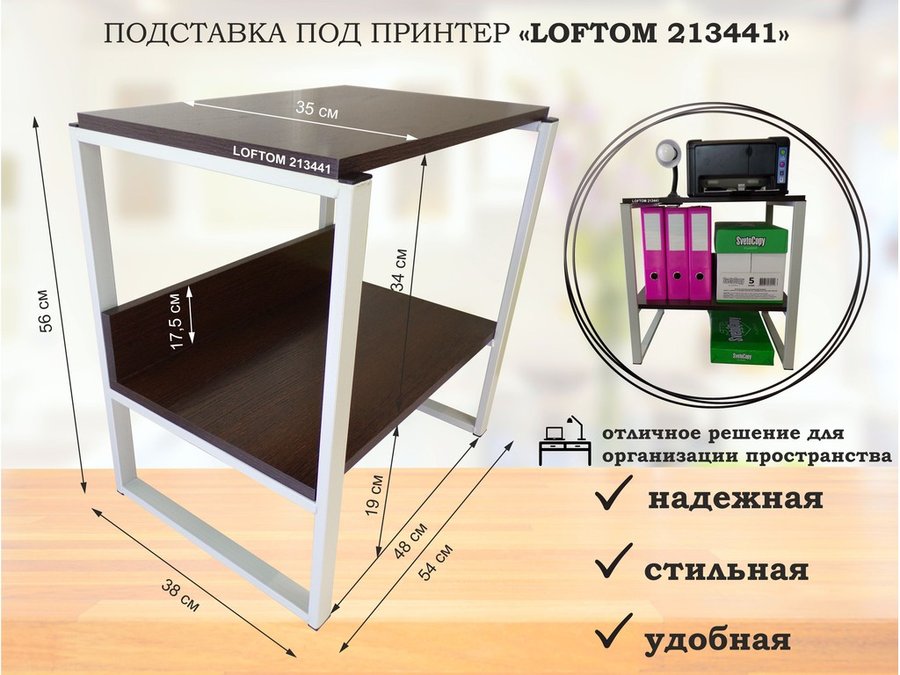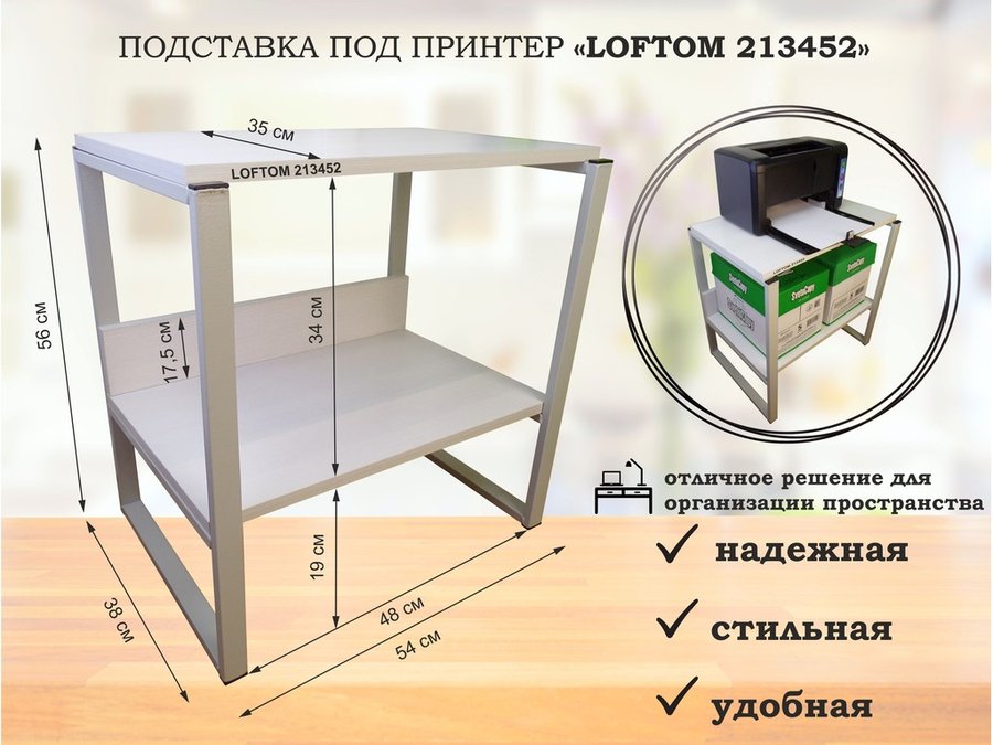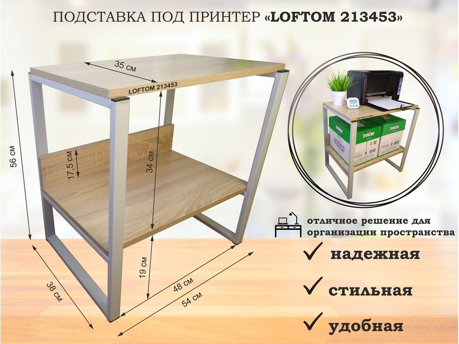 В корзину Купить в 1 клик Столик для ноутбука , подставка для удлинителей , высота 56см серый "LOFTOM 213445" 35х54см, сосна