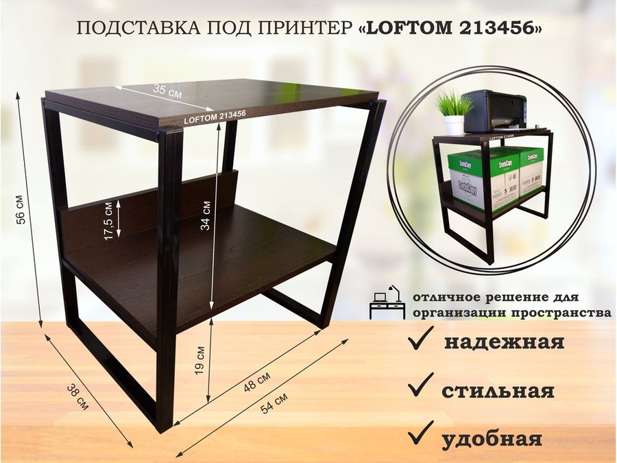 В корзину Купить в 1 клик Столик для ноутбука , подставка для удлинителей , высота 56см черный "LOFTOM 213449" 35х54см, сосна