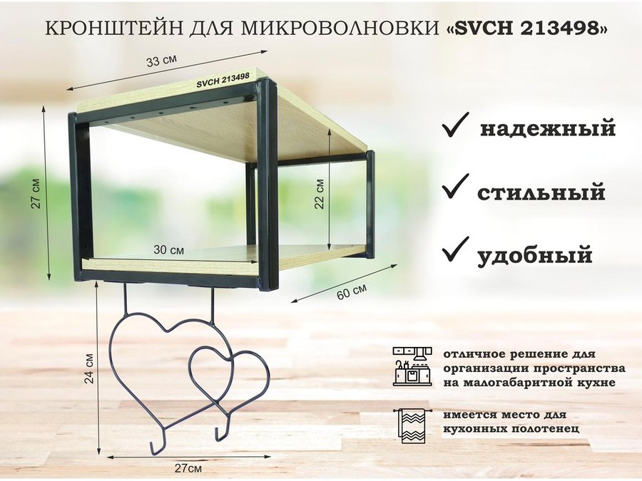 В корзину Купить в 1 клик Кронштейн для микроволновки, 27см черный "SVCH 213499" полка 60х30 см, венге, с двумя сердцами
